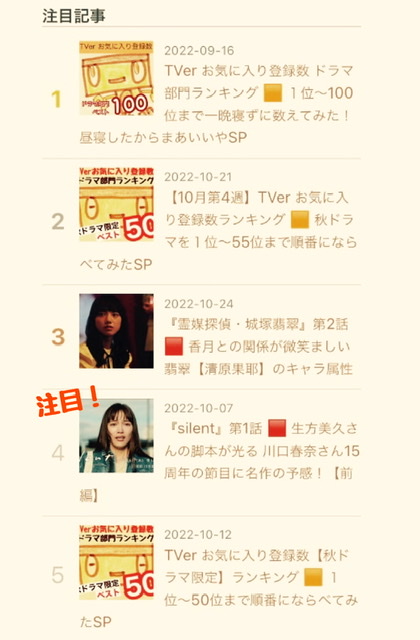 『silent』を追い抜く可能性のあるドラマはあるのか?下記の記事探してみよう